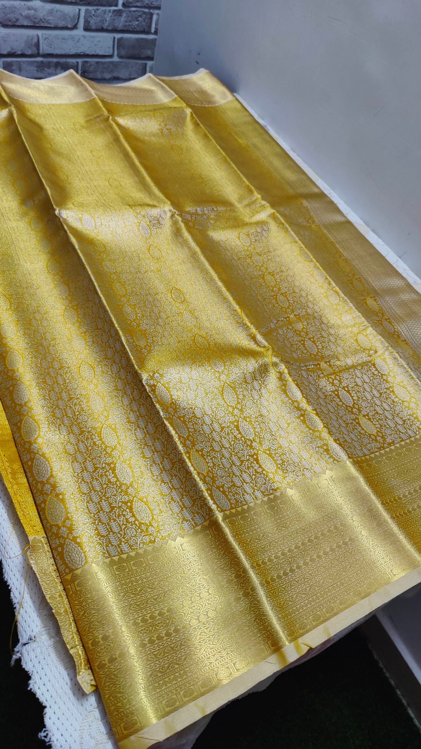 - Intricate zari work: The use of fine zari (gold or silver threads) is a hallmark of luxury sarees, creating opulent brocade work and borders. In authentic sarees, this zari is made from real metallic threads.